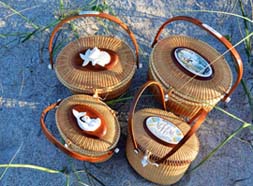Dana can custom weave any size, oval or round, purse with custom scrimed ivory or carved ivory. Other baskets that are